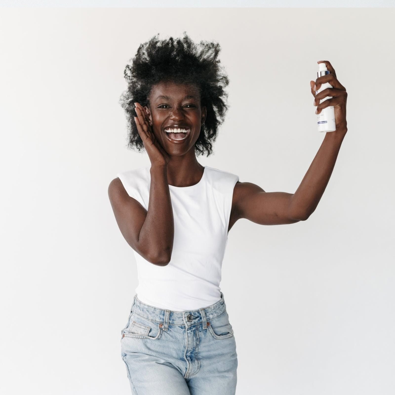 Een verfrissende mist van extracten van schietwilg, jeneverbes, rode klaver en moerasspirea helpt de verschijning van een vette huid en oneffenheden te verminderen.